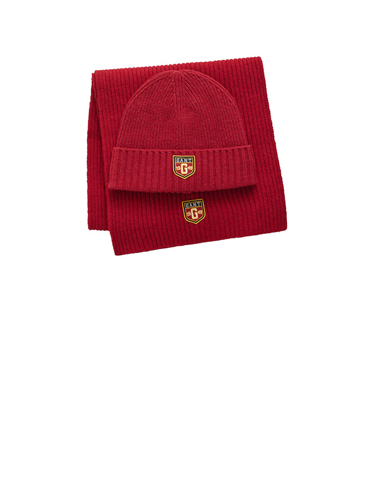 κόκκινο κασκόλ και σκούφος