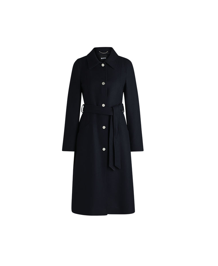 Μαύρο παλτό με ασημί κουμπιά και ζώνη