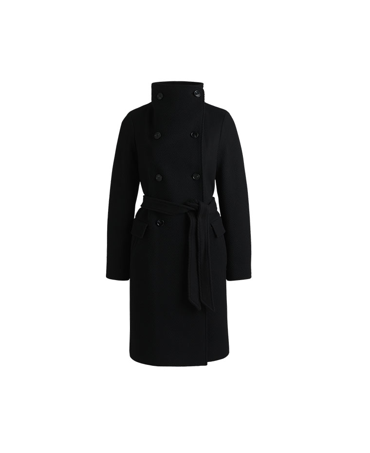 Μαύρο παλτό με ψηλό γιακά και ζώνη