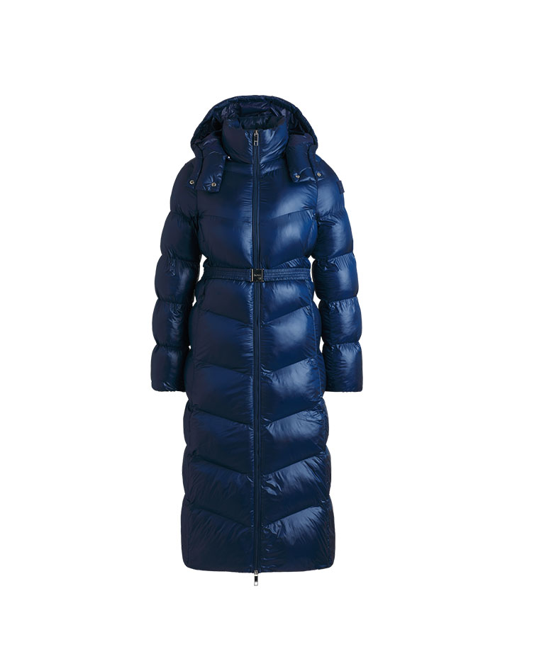 Μπλε μακρύ φουσκωτό μπουφάν με ζώνη